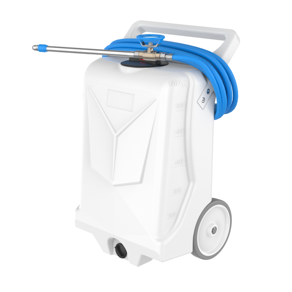 Robustna, visokokakovostna kolesa so zasnovana za uporabo v higiensko zahtevnih okoljih, vključno z živilsko industrijo. Velika kapaciteta rezervoarja v kombinaciji z ergonomsko zasnovo naprave omogoča daljše delovne cikle, večjo učinkovitost ter zmanjšano obremenitev uporabnika.