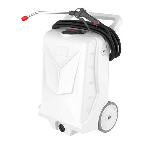 razpršilnik za praške, pomešane z vodo. Namenjen je nanašanju praškastih snovi, ki med aplikacijo zahtevajo stalno mešanje z vodo. Priporoča se za uporabo pri apnu, diatomejski zemlji in številnih drugih snoveh. Pred uporabo se prašek zmeša z vodo in vlije v rezervoar naprave. Razpršilnik omogoča, da medij nalijete direktno v rezervoar pred nanosom preko razpršilnih šob, kar zagotavlja enakomerno in nadzorovano aplikacijo sredstva.