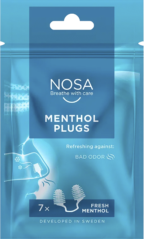 NOSA MENTHOL so diskretni in osvežujoči nosni čepki, ki učinkovito zmanjšajo neprijeten vonj, ne da bi pri tem vplivali na vašo zmožnost dihanja.