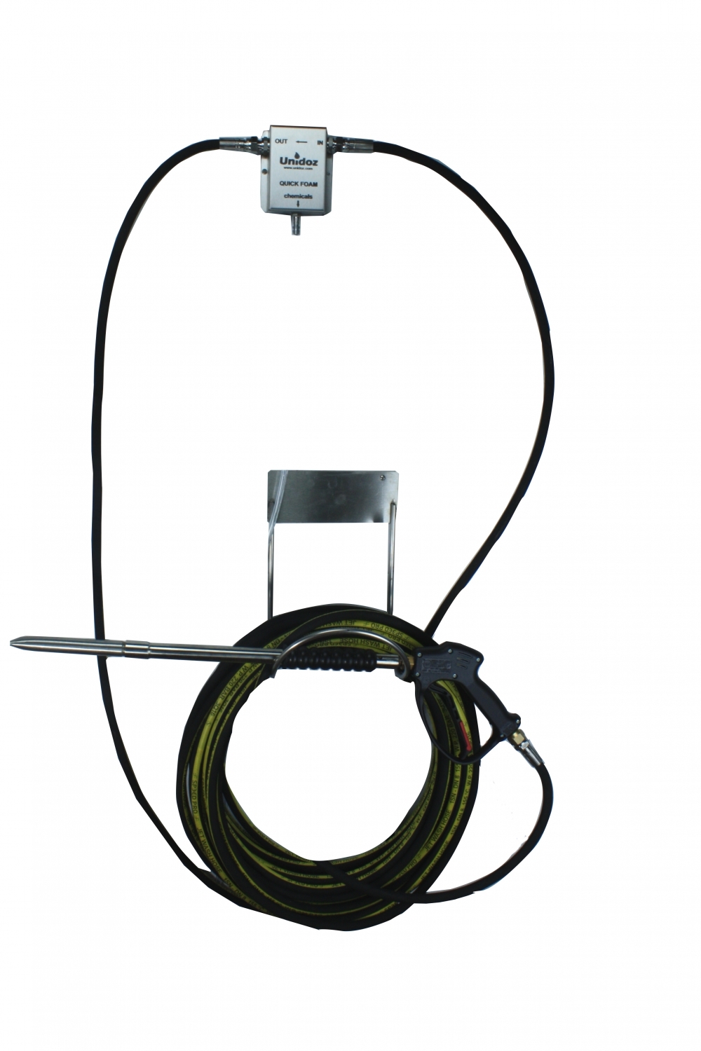 Unidoz Foam Wash Air System Satellite (FWASS15) je stensko nameščen nizkotlačni aplikator pene, namenjen profesionalnemu penjenju čistilnih in pralnih kemičnih sredstev. Sistem je zasnovan za nanos penjenih kemikalij na horizontalne in vertikalne površine ter stropove na razdaljah do 6 m.