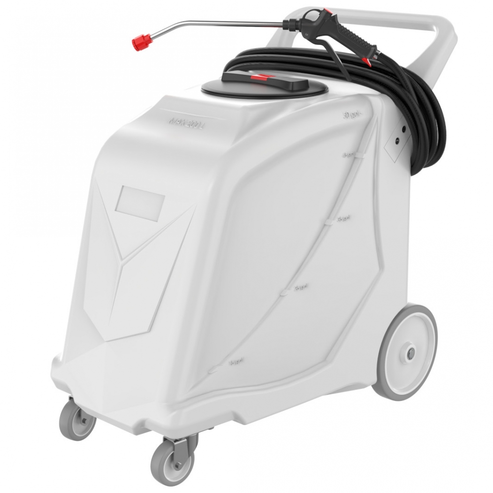 razpršilnik za praške, pomešane z vodo. Namenjen je nanašanju praškastih snovi, ki med aplikacijo zahtevajo stalno mešanje z vodo. Priporoča se za uporabo pri apnu, diatomejski zemlji in številnih drugih snoveh. Pred uporabo se prašek zmeša z vodo in vlije v rezervoar naprave. Razpršilnik omogoča, da medij nalijete direktno v rezervoar pred nanosom preko razpršilnih šob, kar zagotavlja enakomerno in nadzorovano aplikacijo sredstva.